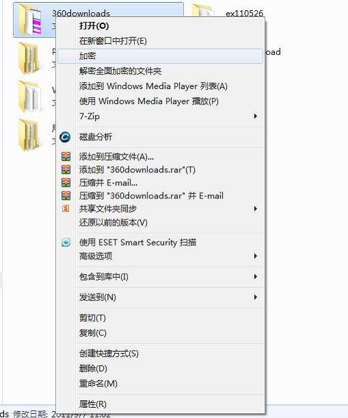 打開我的電腦在需要加密的文件夾上單擊右鍵,在彈出的菜單中選擇加密。